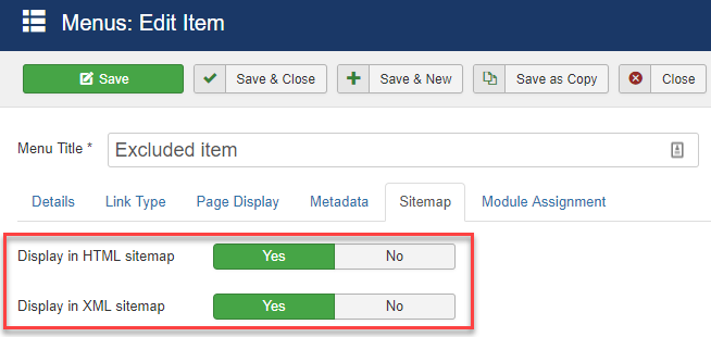 The default option for a menu-item is to be included in the sitemaps. Excluding menu-items from the sitemap however is very easy. In the menu-item, go to the Sitemap tab: